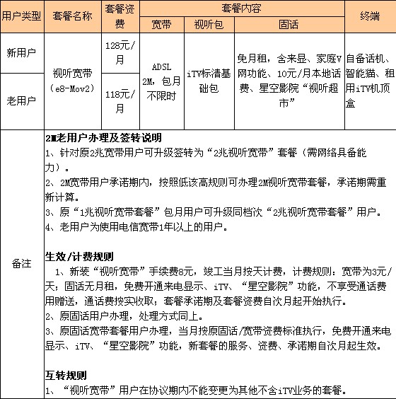 。1)1M視聽寬帶套餐(承諾在網(wǎng)24個(gè)月)