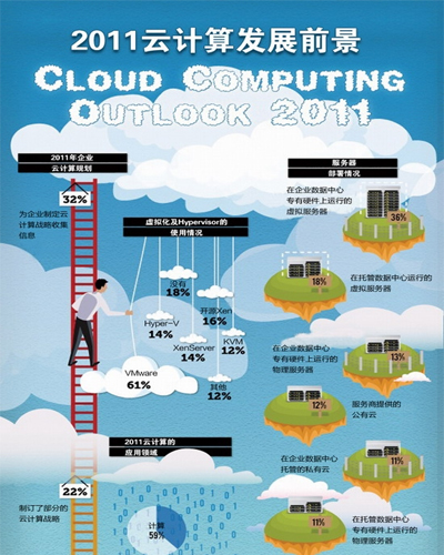 《2011云計(jì)算發(fā)展前景調(diào)查報(bào)告》的目標(biāo)在于收集企業(yè)用戶中使用虛擬化和云計(jì)算技術(shù)的信息,有助于公眾了解云計(jì)算技術(shù)及其服務(wù)的演進(jìn)。這份調(diào)查報(bào)告的結(jié)果來(lái)自2011年第二季度對(duì)BitNami、Cloud.com和Zenoss開(kāi)源與系統(tǒng)管理社區(qū)中500多位用戶的調(diào)查。其目的是想看清楚云計(jì)算技術(shù)的使用趨勢(shì),并對(duì)部署虛擬基礎(chǔ)設(shè)施提供參考。