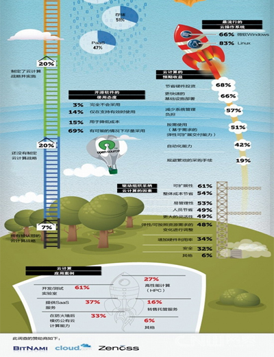 此項(xiàng)調(diào)查指出,在他們調(diào)查的所有云部署項(xiàng)目中,完全不使用開(kāi)源軟件的云項(xiàng)目只有3%,而69%的云項(xiàng)目在可能的情況下均采用了開(kāi)源軟件。