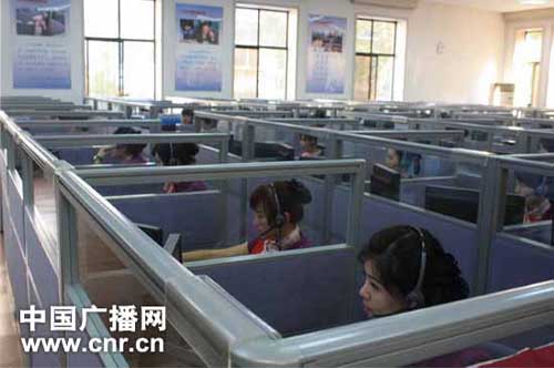 圖:熱線大廳,工作人員4小時換一次班,每人每班要接上百個電話