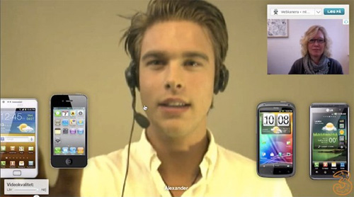 丹麥的運(yùn)營(yíng)商3帶來(lái)了獨(dú)特的視頻服務(wù)熱線“3LiveShop”,這可以讓撥叫客服的客戶與員工面對(duì)面,就像在營(yíng)業(yè)廳一樣。