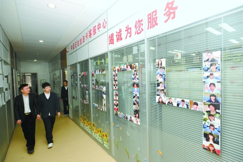 推開中國(guó)石油加油卡客服中心的大門,50個(gè)接聽坐席進(jìn)入眼簾。身著白色上衣、藍(lán)色馬甲的客服人員忙碌地接聽著各地客戶打來的電話。在這個(gè)中心的西墻上“一卡在手,全國(guó)加油”八個(gè)大字非常醒目。