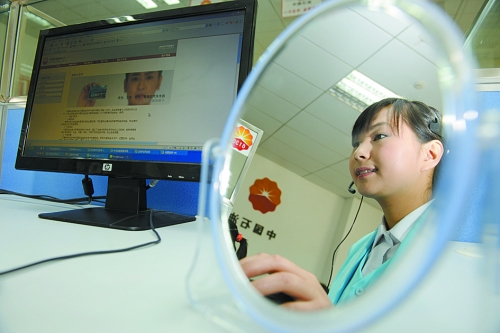 圖:客服人員通過桌上的小鏡子,可隨時(shí)觀察接聽時(shí)的表情,保持微笑