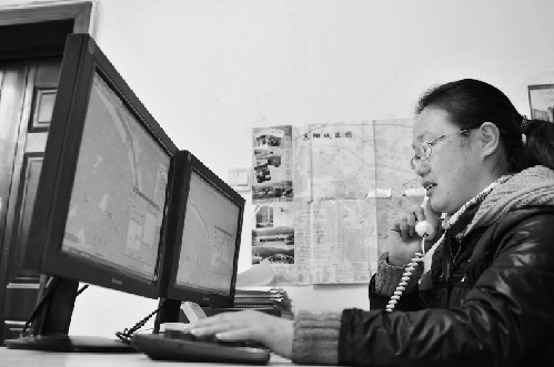 圖:東陽出租車呼叫中心調(diào)度員韓欣在接聽電話,調(diào)度車輛