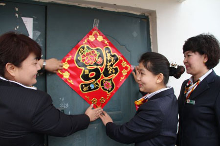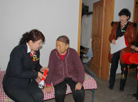 “阿姨,春節(jié)快到了,我們來看看您,前兩天已經幫您把電充上了,這次給您帶了個手電,用著它以后到地下室可以照個亮!标犻L阿依古麗向丁阿姨說明來意,還跟丁阿姨試了試,手電是充電式的,不用換電池,丁阿姨挺高興的。臨走時,阿依古麗還在她家門上貼了個大紅的“!弊郑8@先思倚履昕鞓。