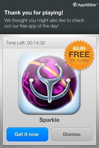 怎樣有效的將應用貨幣化呢?簡單的說,我們首先需要判斷當前用戶群的客戶終身價值,然后通過一系列方法使該價值得到持續(xù)的提升;這些方法包括“應用內(nèi)”的普通廣告、產(chǎn)品體驗廣告、來自相同發(fā)布商的其他應用信息、相關增值產(chǎn)品與服務等。下圖所示的就是在應用中推銷另一款產(chǎn)品的典型案例。