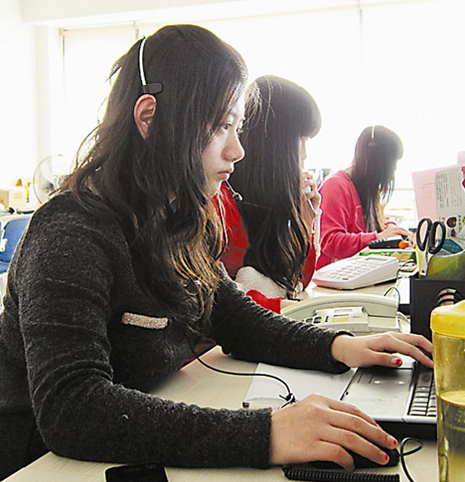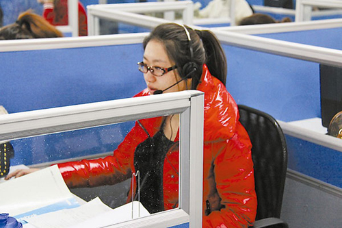 趙曉薇(化名)是拉手網(wǎng)北京客服部的一名工作人員,每天早上8:30,她會(huì)準(zhǔn)時(shí)戴上耳麥,開始一天忙碌的工作!疤孛,電話多的時(shí)候,一天得有300個(gè)來電。”曉薇是一個(gè)語氣平和,聲音甜美,笑容溫和的女孩子。正說著,她就趕緊接通了正在鈴鈴作響的電話,開始熱情、耐心地為用戶釋疑解困。