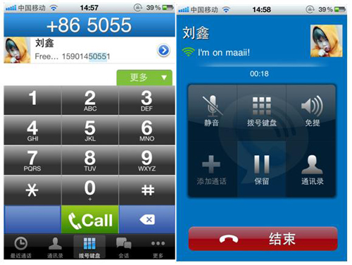 我決定在我的iPhone 4S上測試一下這款軟件,maaii客戶端將會一直在你的手機(jī)后臺運行除非你強(qiáng)行關(guān)閉它,所以你能很快的接到電話而不用等到登錄軟件以后。然而,即使你完全關(guān)閉它,由于它支持信息和呼入的推送功能,所以你能及時瀏覽到提示信息,然后接聽電話和回復(fù)聊天信息。