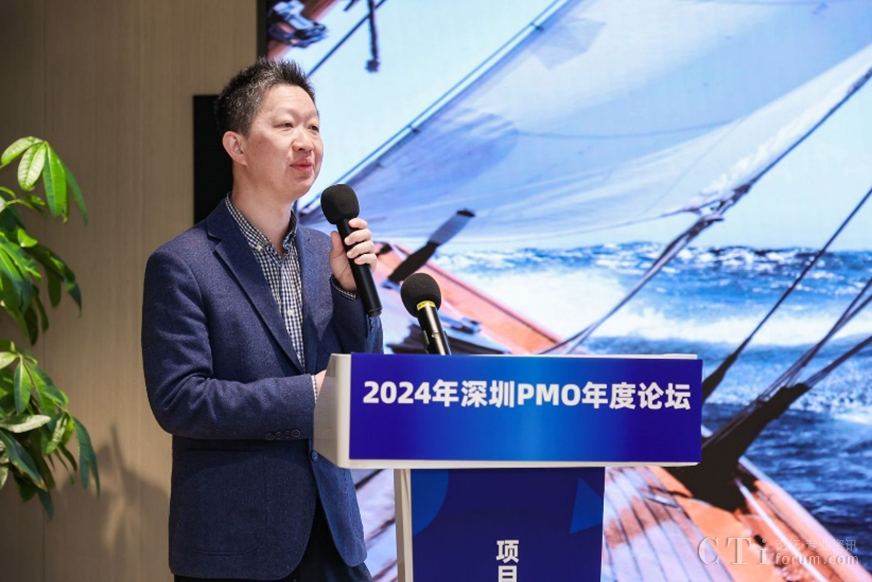 深圳市軟件行業(yè)協(xié)會(huì)執(zhí)行會(huì)長(zhǎng)鄧愛(ài)國(guó)發(fā)表了熱情洋溢的致辭。他強(qiáng)調(diào)了PMO在數(shù)字化轉(zhuǎn)型中的關(guān)鍵作用,并表達(dá)了對(duì)與會(huì)者們的熱烈歡迎和對(duì)論壇的殷切期望。他表示,PMO是項(xiàng)目管理中的重要角色,承擔(dān)著承上啟下的作用,對(duì)于企業(yè)數(shù)字化轉(zhuǎn)型的成功至關(guān)重要。