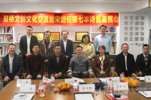12月28日,聚橋文創(chuàng)文化交流暨宋劍伍第七本詩集鑒賞會(huì)在廣州天河召開,本次活動(dòng)為首屆廣東中華優(yōu)秀傳統(tǒng)文化節(jié)系列活動(dòng)之一,由廣東省傳統(tǒng)文化促進(jìn)會(huì)、廣州聚橋文創(chuàng)、廣州市愛國為民文化信息傳播有限公司聯(lián)合主辦。廣東省文聯(lián)副秘書長、省文藝評論家協(xié)會(huì)專職副主席梁少鋒,廣東省傳統(tǒng)文化促進(jìn)會(huì)會(huì)長李世玉,深圳城投集團(tuán)執(zhí)行總裁安菲佳,廣東省傳統(tǒng)文化促進(jìn)會(huì)林啟明、吳彬、一凡、徐波博士,聚橋文創(chuàng)總經(jīng)理、廣東省傳統(tǒng)文化促進(jìn)會(huì)常務(wù)理事鄒橋華,青麥源集團(tuán)董事長王錫光,商業(yè)戰(zhàn)略分析師、詩人宋劍伍,廣東金咨貓總經(jīng)理陳錫文等參加本次活動(dòng)。正皓集團(tuán)董事長潘堅(jiān)發(fā)來活動(dòng)祝賀信,并表示集團(tuán)將在2024年和廣東省傳統(tǒng)文化促進(jìn)會(huì)及詩人宋劍伍在品牌文化上有更深度的合作。