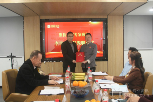 (圖:聚橋文創(chuàng)總經(jīng)理鄒橋華向廣東省傳統(tǒng)文化促進(jìn)會(huì)會(huì)長李世玉頒發(fā)顧問聘書)