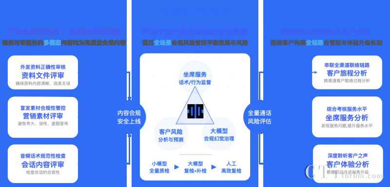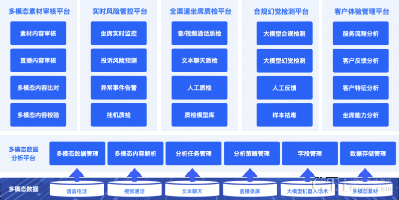 依托多項(xiàng)AI能力融合應(yīng)用,升級(jí)后的【多模態(tài)合規(guī)分析平臺(tái)】能處理對(duì)話數(shù)據(jù)、圖片、音頻和視頻等各種格式的信息,同時(shí)采用大小模型組合式AI合規(guī)檢查機(jī)制,對(duì)各個(gè)渠道的客戶互動(dòng)數(shù)據(jù)進(jìn)行聚合分析,實(shí)現(xiàn)大模型構(gòu)成坐席和客戶間全場景多模態(tài)數(shù)據(jù)檢測與分析,以及客戶體驗(yàn)升級(jí)。