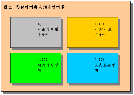 。。為了對(duì)此進(jìn)行說(shuō)明,假設(shè)呼叫中心每天可預(yù)計(jì)處理大約20000個(gè)呼叫。這包含了上文所述的四種呼叫。將有50%以上呼叫中心接到的呼叫是關(guān)于基本服務(wù)請(qǐng)求或性質(zhì)請(qǐng)求。這種預(yù)計(jì)呼叫量不包括預(yù)計(jì)呼叫增長(zhǎng)量,因?yàn)闆](méi)有以往信息不能估計(jì)出增長(zhǎng)情況。而在呼叫中心運(yùn)行初期通常是沒(méi)有這些信息的。應(yīng)在執(zhí)行計(jì)劃中進(jìn)行增長(zhǎng)假設(shè)分析,保證系統(tǒng)容量在執(zhí)行服務(wù)市場(chǎng)計(jì)劃后可以應(yīng)付相應(yīng)的增長(zhǎng)水平。
