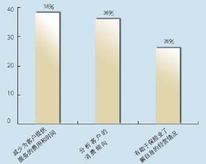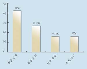 關(guān)于所應(yīng)用的CRM類型,有5家是呼叫中心,5家是分析型,7家是運(yùn)營型,2家是屬于大型企業(yè)CRM。其中13家擁有動態(tài)客戶數(shù)據(jù)庫,占到68.4%。這其中又有42%利用數(shù)據(jù)庫作客戶記錄,26.3%作為客戶支持使用,15.7%用作統(tǒng)計(jì)分析,另有16%作為市場推廣。保險公司與客戶聯(lián)系的方式,從重要性來看依次為:面對面\電話\網(wǎng)絡(luò)\傳真,這說明保險公司對于與客戶進(jìn)行人性化交流的重視。在問到CRM的主要作用時,有5家表示使用CRM有助于保險業(yè)了解自身的經(jīng)營情況,幫助公司準(zhǔn)確地發(fā)現(xiàn)贏利客戶和具有贏利潛力的客戶,有7家認(rèn)為使用CRM有助于分析客戶的消費(fèi)傾向,有7家認(rèn)為使用CRM有助于優(yōu)化信息和資源管理。在問到是否愿意為像CRM系統(tǒng)這樣的咨詢或服務(wù)付費(fèi)時,有11家表示愿意,占到57.8%。