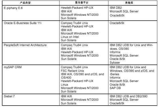 環(huán)境是企業(yè)在選擇軟件的過程中最簡單的技術架構的評估標準,而且是最容易區(qū)分的。最重要的環(huán)境就是CRM產(chǎn)品所支持的服務器平臺和數(shù)據(jù)庫。在你選擇CRM產(chǎn)品時,最好不要改變你現(xiàn)有的服務器平臺和數(shù)據(jù)庫標準,否則你將會增加很多投資。因此一個CRM產(chǎn)品最好要支持你的企業(yè)原有環(huán)境。下表列出了那5家產(chǎn)品的技術架構的環(huán)境。