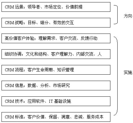 對(duì)于大多數(shù)公司而言,一個(gè)產(chǎn)品戰(zhàn)略很好理解。但是CRM戰(zhàn)略卻不太讓人理解。這是因?yàn)樵贑RM產(chǎn)業(yè)界、學(xué)術(shù)界對(duì)"CRM是什么"、"CRM戰(zhàn)略由什么組成"還沒(méi)有達(dá)成共識(shí)。因此,以下所闡述的CRM戰(zhàn)略并不一定勝人一籌,但我們會(huì)努力全面論述CRM戰(zhàn)略框架。我們認(rèn)為一個(gè)CRM戰(zhàn)略必須包括以下幾個(gè)內(nèi)容:定義價(jià)值前提、定義客戶(hù)戰(zhàn)略、企業(yè)變革計(jì)劃。