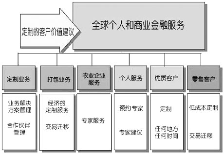 客戶細分方案 澳大利亞國民銀行定義了六個等級的客戶群,提供著不同程度的服務(wù), 創(chuàng)建這些客戶等級的目的是讓銀行更容易地對客戶進行定義(如圖2所示)。