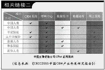 據(jù)某IT媒體2002年末的調(diào)研,只有不到1/5的中國(guó)保險(xiǎn)公司擁有客戶關(guān)系管理系統(tǒng),但是近六成的保險(xiǎn)公司計(jì)劃在近期內(nèi)實(shí)施CRM;另一份調(diào)查則顯示中國(guó)保險(xiǎn)業(yè)過(guò)去3年的IT投入平均達(dá)到9.36億元,幾乎所有的保險(xiǎn)公司都在從不同側(cè)面開展CRM建設(shè)。CRM在中國(guó)保險(xiǎn)業(yè)的應(yīng)用,到底是處于落伍還是冒進(jìn)狀態(tài),成為一個(gè)意味深長(zhǎng)的話題。