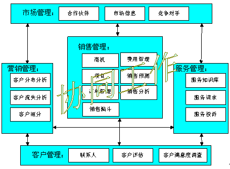 以客戶(hù)管理、銷(xiāo)售、服務(wù)、營(yíng)銷(xiāo)、市場(chǎng)之間的協(xié)同工作(CooperativeWorking)為基礎(chǔ)目標(biāo);