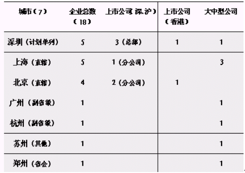圖1:截止2003年10月底統(tǒng)計的7座城市18家導(dǎo)入CRM企業(yè)的分布情況。