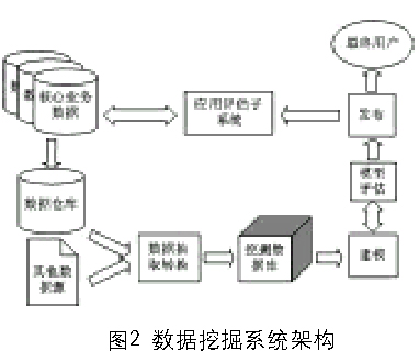 規(guī)則生成子系統(tǒng)主要完成根據(jù)數(shù)據(jù)倉庫提供的保單歷史數(shù)據(jù),統(tǒng)計并產(chǎn)生相關(guān)規(guī)律,并輸出相關(guān)結(jié)果。具體包括數(shù)據(jù)抽取轉(zhuǎn)換、挖掘數(shù)據(jù)庫建立、建模(其中包括了參數(shù)設(shè)置)、模型評估、結(jié)果發(fā)布。發(fā)布的對象是高層決策者,同時將模型提交給應(yīng)用評估子系統(tǒng).根據(jù)效果每月動態(tài)生成新的模型。