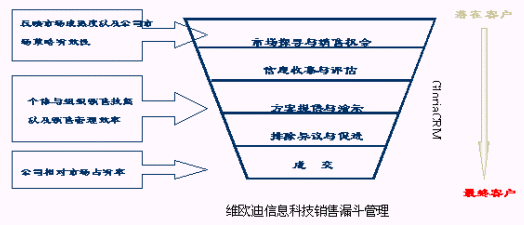 第三,強(qiáng)化銷售過程管理。通過把銷售漏斗和項(xiàng)目管理相結(jié)合。對重要的項(xiàng)目做到明察秋毫,并且合理的調(diào)動資源,提高重要項(xiàng)目的成功率。實(shí)現(xiàn)銷售過程的透明管理。