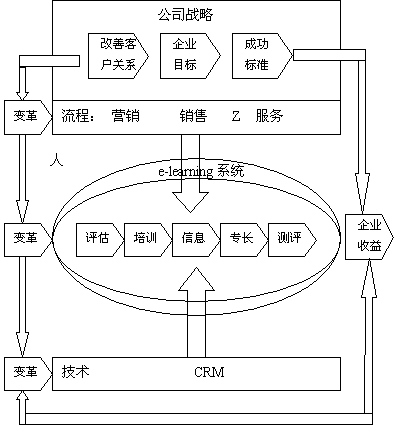 圖:e-learning系統(tǒng)在CRM部署中的作用: