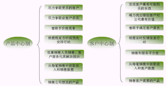 蓋洛普認(rèn)為新型的企業(yè)與客戶的關(guān)系應(yīng)當(dāng)是以"客戶為中心"與客戶的互動(dòng)關(guān)系,通過滿足客戶需求提高客戶滿意度來吸引和留住客戶,從而建立和保持企業(yè)的競爭優(yōu)勢。這其實(shí)就是從產(chǎn)品中心制到客戶中心制的演變的體現(xiàn),如下圖: