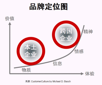 客戶(hù)體驗(yàn)是客戶(hù)關(guān)系管理的重要組成部分。根據(jù)過(guò)去數(shù)年評(píng)選中國(guó)最佳CRM實(shí)施企業(yè)所作的分析,本土與外資企業(yè)在企業(yè)體檢中各項(xiàng)主要評(píng)分中有較大差距,其中之一是客戶(hù)體驗(yàn)(-7.1分,見(jiàn)圖一、本土與跨國(guó)企業(yè)之差距)。本土企業(yè)若只提供低層次的客戶(hù)體驗(yàn),只為客戶(hù)帶來(lái)低價(jià)值,也只能打價(jià)格戰(zhàn)、做代工,很難做大做強(qiáng)打通全球市場(chǎng)。做好品牌,其實(shí)再深入一點(diǎn)說(shuō)就是要做好客戶(hù)體驗(yàn),價(jià)值(價(jià)格)才會(huì)上去(見(jiàn)圖二、品牌定位)。