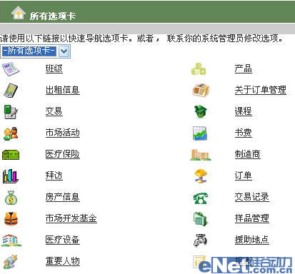 在選擇模塊的時(shí)候,如上圖所示,只要點(diǎn)擊“所有選項(xiàng)卡”,幾百個(gè)具體的模塊選項(xiàng)卡就都可供選擇了,對(duì)于醫(yī)院來(lái)講,很容易就能選擇到所有適合自己的功能模塊。