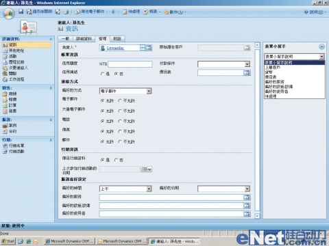 Dynamics CRM 4.0的聯(lián)絡(luò)人,除基本信息之外,還可以針對偏好的聯(lián)絡(luò)方式、活動記錄、次要聯(lián)絡(luò)人或者商機管理等,儲存更詳細(xì)的記錄。