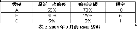 為了進(jìn)一步了解客戶,必須對(duì)客戶最近一次購(gòu)買(mǎi)時(shí)間、頻率和購(gòu)買(mǎi)金額(RFM)進(jìn)行簡(jiǎn)單的分析。從下表中我們發(fā)現(xiàn)頻繁進(jìn)行采購(gòu)的活躍客戶訂單金額占了總收入的大部分。