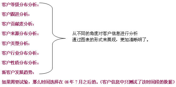 - 客戶分析:根據(jù)客戶管理的進(jìn)程,多方位多角度的分析客戶的構(gòu)成、發(fā)展、進(jìn)程、貢獻(xiàn)等,幫助企業(yè)快速響應(yīng)客戶的需求,有價值的關(guān)懷客戶,使企業(yè)客戶關(guān)系管理建立起一套科學(xué)的體系。