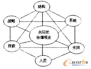 按照麥肯錫以及科特勒的綜合觀點(diǎn),前面三個要素——戰(zhàn)略、結(jié)構(gòu)和系統(tǒng)被認(rèn)為是最成功的硬S;后面四個要素——作風(fēng)、人員、技能和共同的價值觀念是軟S。每個組織都和總體環(huán)境的某個部分相互影響,相互作用,并且把這一部分成為相關(guān)環(huán)境并指出最能適應(yīng)環(huán)境的公司必將獲得成功。