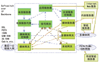 E1、DSL、Ethernet到無(wú)線接入技術(shù)GSM/GPRS、PHS、W-CDMA以至未來(lái)的接入技術(shù);支持與各種傳統(tǒng)電信業(yè)務(wù)網(wǎng)絡(luò)如PSTN和PLMN網(wǎng)絡(luò)以信令網(wǎng)節(jié)點(diǎn)方式互聯(lián),支持與IP業(yè)務(wù)網(wǎng)絡(luò)(如VoIP)和多媒體通信網(wǎng)絡(luò)(如Internet)互聯(lián);與接入網(wǎng)絡(luò)的信令和傳統(tǒng)業(yè)務(wù)網(wǎng)絡(luò)的信令(SS7)無(wú)縫互聯(lián);支持話音、遠(yuǎn)程會(huì)議、多媒體通信等基于會(huì)話的通信業(yè)務(wù);