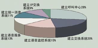 目前,語(yǔ)音卡已經(jīng)廣泛應(yīng)用于各行各業(yè),應(yīng)用尤其以呼叫中心應(yīng)用最為典型。 呼叫中心普遍應(yīng)用于各種行業(yè)部門中,例如:電信、金融、政府機(jī)關(guān)、醫(yī)療、保險(xiǎn)部門、電力等及其他一些應(yīng)用,像121天氣預(yù)報(bào)等。對(duì)用戶的抽樣調(diào)查中,已經(jīng)使用語(yǔ)音卡的用戶占58%,計(jì)劃使用的占26%,而語(yǔ)音卡的應(yīng)用以前臺(tái)、客戶服務(wù)部和售后服務(wù)部應(yīng)用居多,可見語(yǔ)音卡的應(yīng)用市場(chǎng)潛力非常巨大。語(yǔ)音卡的應(yīng)用中主要以建立呼叫中心和交換系統(tǒng)為主,常用于查詢、咨詢和電話委托交易等。