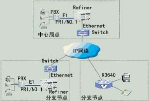 對于大多數的企業(yè)用戶,都擁有自己的用戶交換機PBX。在進行IP電話網的建設中,這些PBX將被保留,繼續(xù)承擔起用戶接入的功能。而這些PBX之間的中繼連接都將通過IP骨干網來完成。這樣,既可以節(jié)約價格不菲的長途中繼租用費,也避免了大規(guī)模的改造所帶來的浪費。