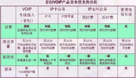 比業(yè)內(nèi)其他多種IP電話更具價(jià)格優(yōu)勢(shì)。每個(gè)長(zhǎng)途呼叫無(wú)論是否建立成功,都不收取本地市話費(fèi)用。對(duì)于國(guó)內(nèi)目前話務(wù)量集中的國(guó)際間通信,采用的資費(fèi)標(biāo)準(zhǔn)相對(duì)其他運(yùn)營(yíng)商具有價(jià)格優(yōu)勢(shì)。對(duì)于企業(yè)的Intranet Call,由于企業(yè)間不產(chǎn)生話費(fèi),更能夠節(jié)省大量的話務(wù)開(kāi)支。