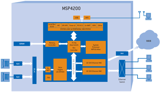 PMC-Sierra經(jīng)過現(xiàn)場(chǎng)驗(yàn)證的語音處理模塊(VPN)可以在整個(gè)MSP產(chǎn)品系列得到支持,不管是低成本ATA還是高性能CPE寬帶路由器和網(wǎng)關(guān)方案都可以提供運(yùn)營(yíng)商級(jí)PSTN質(zhì)量的VoIP服務(wù)。