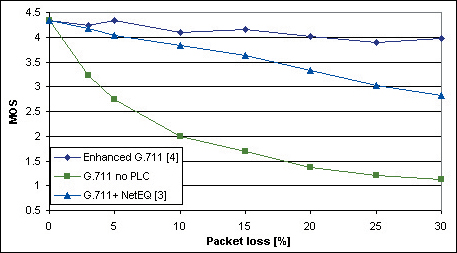 為了處理數(shù)據(jù)包丟失問(wèn)題,VoIP和VoFi系統(tǒng)采用了名為數(shù)據(jù)包丟失隱藏(packet loss concealment)的一種技術(shù)。這種技術(shù)并不找回丟失的數(shù)據(jù)包,只是把丟失數(shù)據(jù)包對(duì)語(yǔ)音產(chǎn)生的不利影響掩蓋起來(lái)。讓人驚訝的是,這種方法的效果非常好:在某些情況下最多允許可以丟失30%的數(shù)據(jù)包