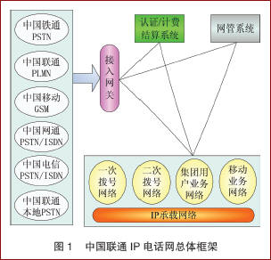 中國聯(lián)通IP電話網(wǎng)自1999年6月入運營以來,經(jīng)過一期、二期和三期工的建設(shè),目前,網(wǎng)絡(luò)已覆蓋中國329個地市,E1端口規(guī)模超過1.8萬個,成為全球最的IP電話網(wǎng)絡(luò)。網(wǎng)絡(luò)的話務(wù)量已經(jīng)達(dá)到月近10億分鐘,已是世界上流量最大的電話網(wǎng)絡(luò)。中國聯(lián)通IP電話網(wǎng)總體框架圖1所示,包括IP承載網(wǎng)絡(luò)、業(yè)務(wù)網(wǎng)絡(luò)(包式括一次撥號業(yè)務(wù)網(wǎng)、二次撥號業(yè)務(wù)網(wǎng)、集團(tuán)用戶業(yè)務(wù)網(wǎng)和移動用戶業(yè)務(wù)網(wǎng))、IP電話網(wǎng)絡(luò)管理設(shè)備(如計費結(jié)算系統(tǒng)、網(wǎng)管系統(tǒng)等)、與各類本地網(wǎng)絡(luò)連接的接入網(wǎng)關(guān)等部分。