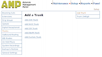有四個不同的中繼類型可供選擇:ZAP, IAX2, SIP和ENUM,再加上一個自定義類型,你所選擇的VoIP服務提供商應該有相關的信息來指導你選擇哪一個具體的類型。