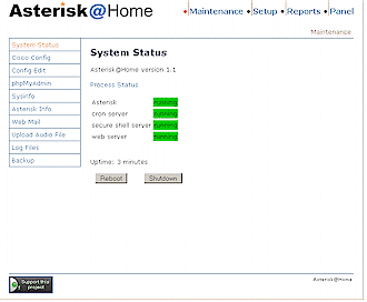 web GUI也被認為是Asterisk管理入口(Asterisk Management Portal,AMP),使用它可允許你讀取和編輯數(shù)據庫,查看報告,更改設置等(圖3)。
