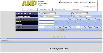 在圖6所示的系統(tǒng)狀態(tài)頁面中,大家可看到有“”Reboot和“Shutdown”按鈕排列在下部,在你運行AAH的機器離控制計算機很遠的時候這個功能很管用。報告標簽(圖7)看上去非常簡單,只有四個類別:呼叫記錄、比較記錄、月流量和日負荷,在這些報告中有些內容顯示不全,但系統(tǒng)又不讓你來調整數(shù)據的寬度范圍。