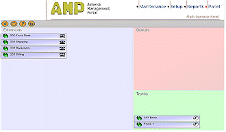 面板標簽(圖8)是一個由Flash建立的操作面板,它包含有不同的extensions、隊列和中斷,并可允許你來查看誰在使用這個系統(tǒng),還可轉移呼叫、掛斷線路并可通過面板來建立電話會議。