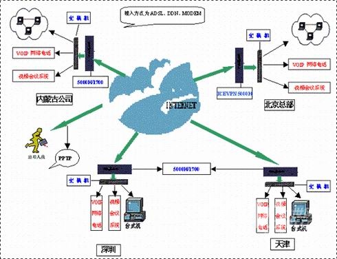 按照西貝公司的要求,ICEFLOW采用FUNCTION口將其普通辦公區(qū)和重要區(qū)域(如財(cái)務(wù)區(qū))分離開(kāi)來(lái),進(jìn)一步保障關(guān)鍵數(shù)據(jù)傳輸?shù)陌踩,采用VOIP電話,將為公司節(jié)約大量電話費(fèi)用。