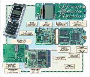 Wi-Fi功能由科勝訊(Conexant)的Prism3 802.11b芯片組完成,是一款傳統(tǒng)的專(zhuān)業(yè)方案?苿儆嵧ㄟ^(guò)收購(gòu)GlobeSpan-Virata得到Prism3 802.11b,而GlobeSpan-Virata之前購(gòu)買(mǎi)了Intersil的Wi-Fi芯片組業(yè)務(wù),所以Prism3組件仍打著Intersil的標(biāo)識(shí)。以目前的標(biāo)準(zhǔn)看,Prism3總體Wi-Fi方案的集成度不算太高。ISL3871基帶/媒體存取控制芯片與ISL3684收發(fā)器相連,一款獨(dú)立的壓控振蕩器和一個(gè)RF功放(ISL3084和ISL3984)共同支持ISL3684完成工作。適中的256KB SRAM和128KB閃存滿(mǎn)足該設(shè)計(jì)中802.11b部分對(duì)存儲(chǔ)器的需要。