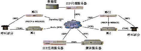 統(tǒng)一通信平臺(tái)使用會(huì)話初始化協(xié)議(Session Initiation Protocol)與VoIP網(wǎng)絡(luò)通信,如圖1所示。選擇SIP而不是其他協(xié)議(如H.323),是因?yàn)樗赩oIP領(lǐng)域中越來(lái)越多地被采用。這一點(diǎn)可以由Microsoft和Sun公司都宣稱(chēng)支持SIP而不是H.323、MGCP或MEGACO協(xié)議而得到證明。