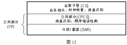 ATM適配層,是ATM核心(包括ATM層和物理層,與業(yè)務無關(guān))和高層間的接口(見圖5),它是為使ATM層能適應不同業(yè)務類型而設置的,故ATM對各種業(yè)務承載能力集中體現(xiàn)在ATM適配層。ATM適配層又細分為若干子層。具體如下圖12。