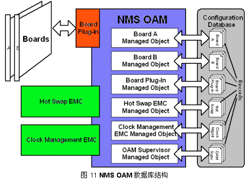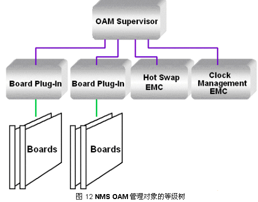 NMS公司的OAM組件是作為Natural Access服務(wù)提供給用戶的,用以管理一個機(jī)架甚至多個機(jī)架上的NMS板卡和軟件模塊。OAM即操作(Operation)、管理(Administration)、維護(hù)(Maintenance),通過OAM可以創(chuàng)建、刪除、查詢OAM下的各組件的配置,啟動、終止或測試組件的運(yùn)行,以及接收從組件發(fā)出的告警等事件通知。